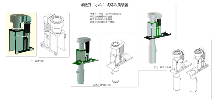 半敞开“小车”式外环吹风结构, 线下维护生产连续性好,可移位设计便利生产操作。With semi-open cart type outward annular blow structure, it has advantages of off-line maintenance for uninterrupted production as well as mobile design for easy operation.