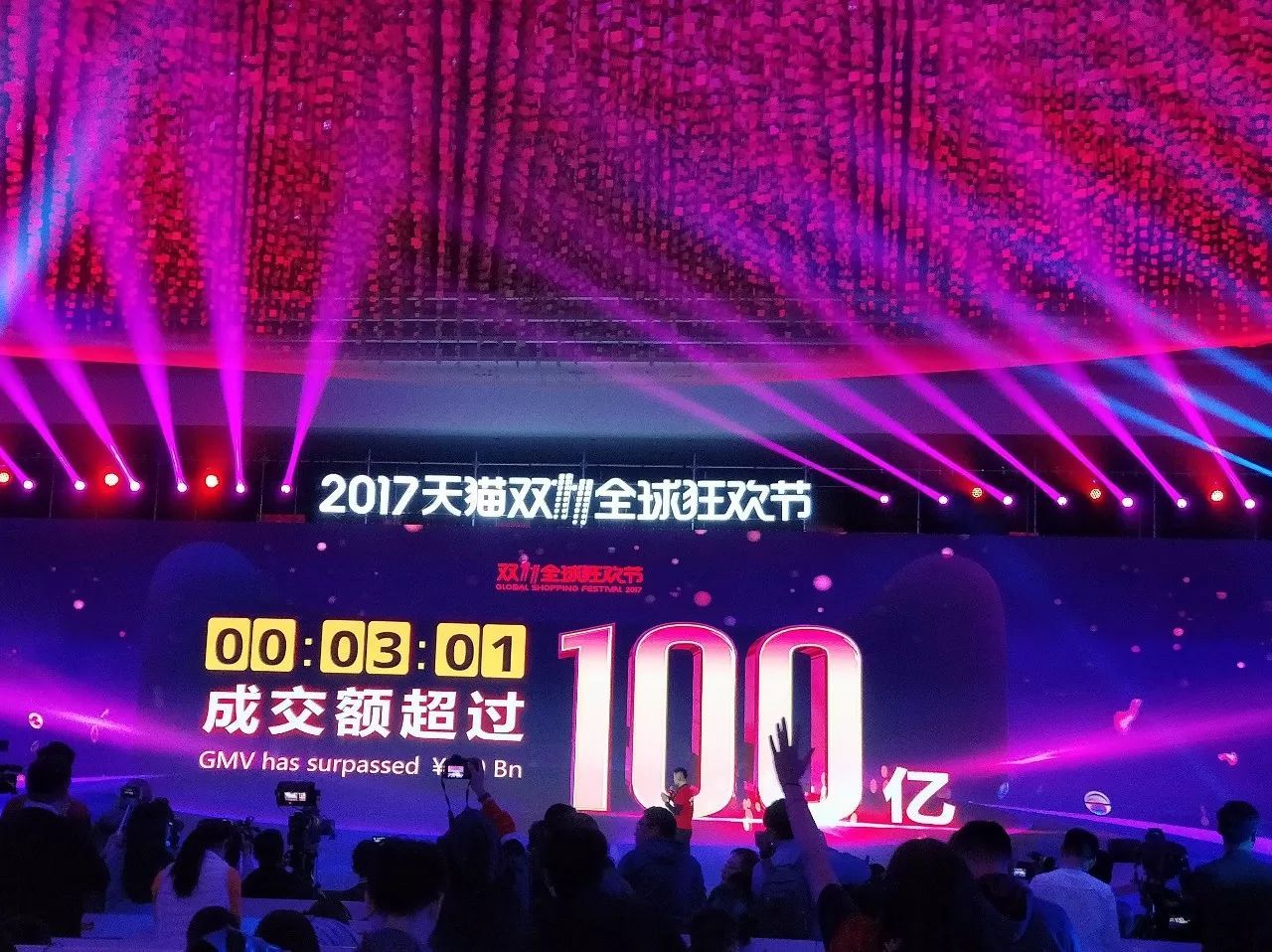 3分1秒,超100亿元!去年双十一破百亿所用时间为6分58秒
